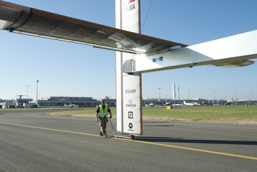 A.Borschberg пилотировал „Solar Impulse“ на первом этапе полёта из Швейцарского города Паэрно и прилетел в Мадрид 25 мая