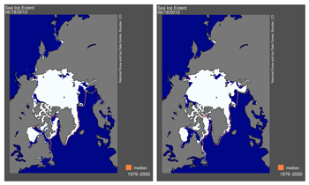 Совсем не давно атмосферный уровень углекислого газа в Арктике достиг угрожающего уровня 400 частей на миллион. В настоящее время, информация, поступающая из Национального центра исследований NSIDC показывает, что таяние морского льда Арктики, в этом году, высокое как никогда до этого.